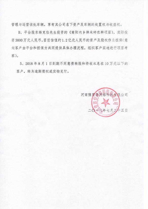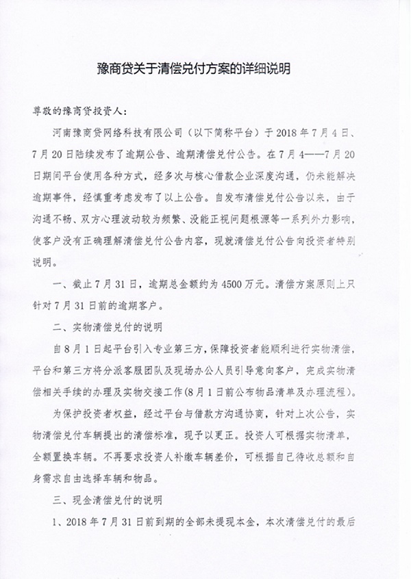 豫商贷 2018.7.25-10:11……豫商贷关于清偿兑付方案的详细说明