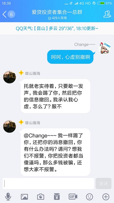 爱贷网 2018.7.25-18:39……托就老实呆着,只要敢一发声,我会踢了你,然后把你的信息撤回