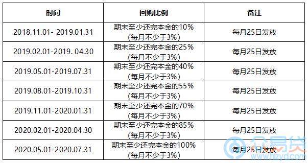 ②出借人待收本金按比例回购,共历时21个月,具体如下表: