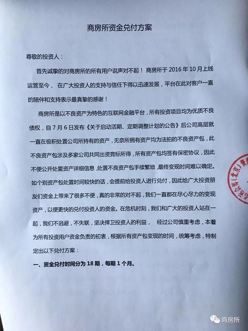 商房所 2018.7.27-22:54……商房所资金兑付方案
