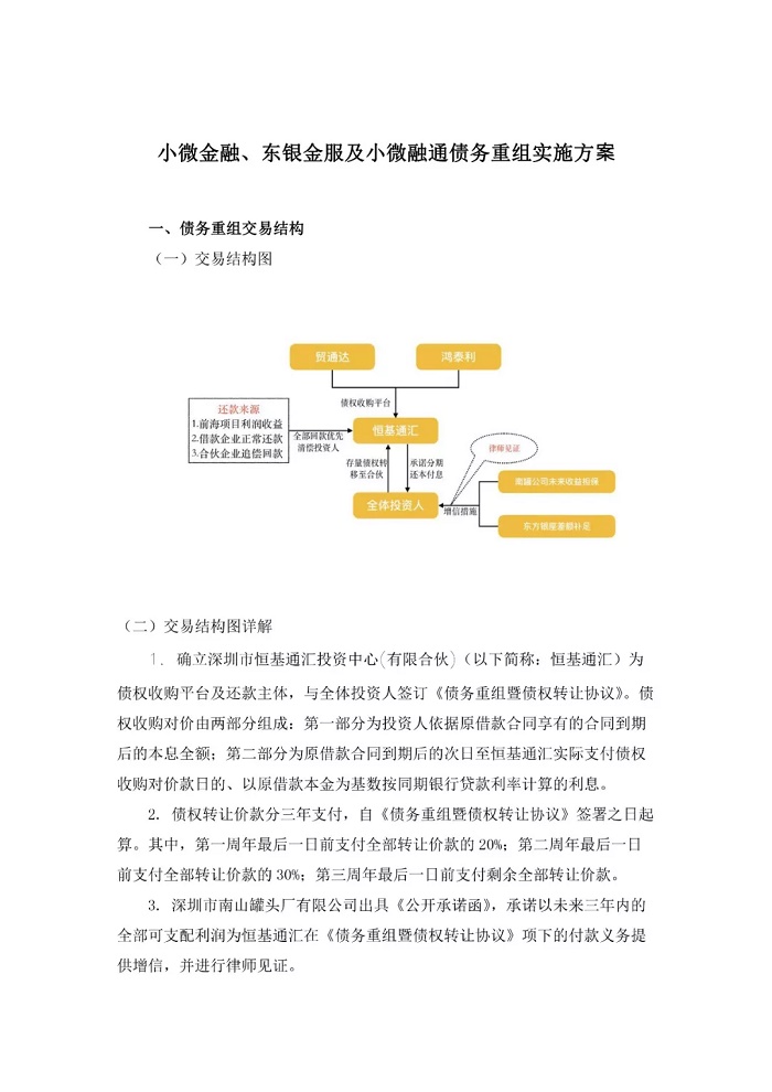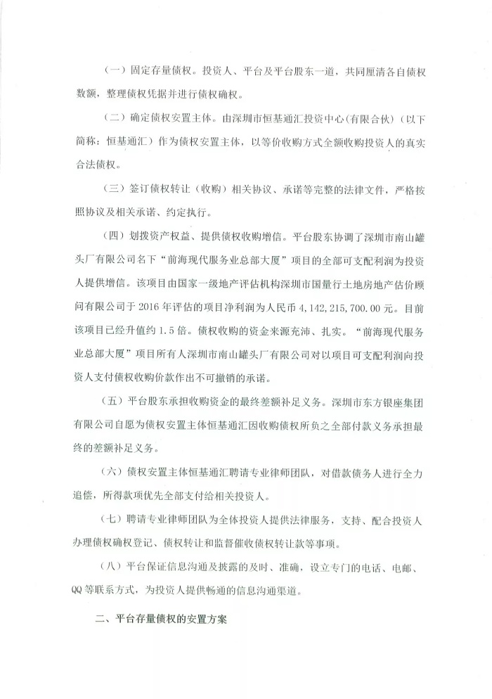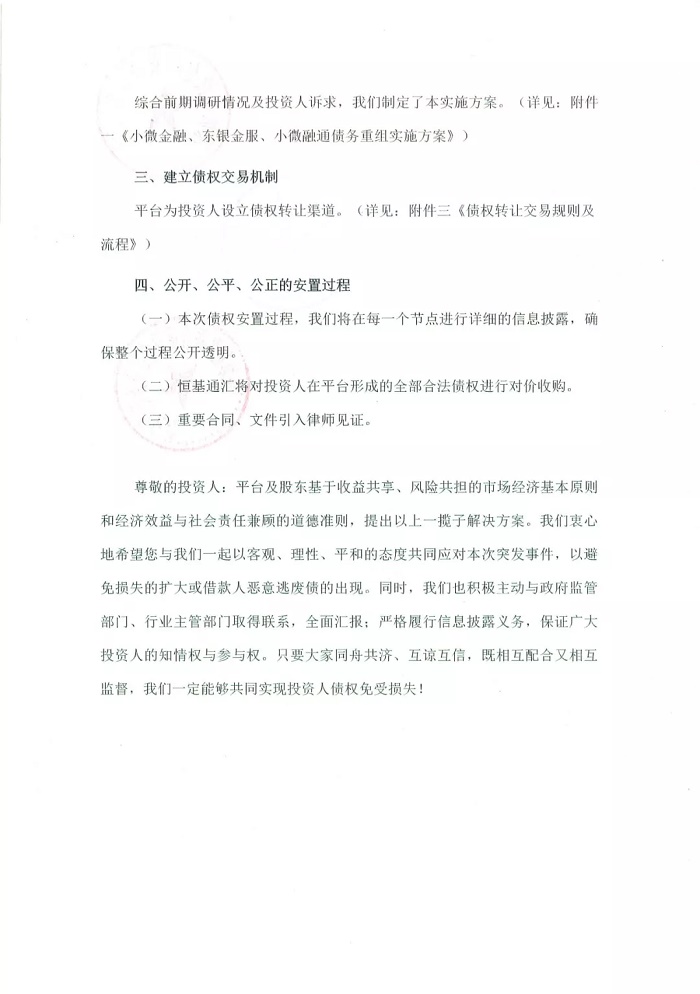 关于小微金融、小微融通、东银金服投资人债权安置方案