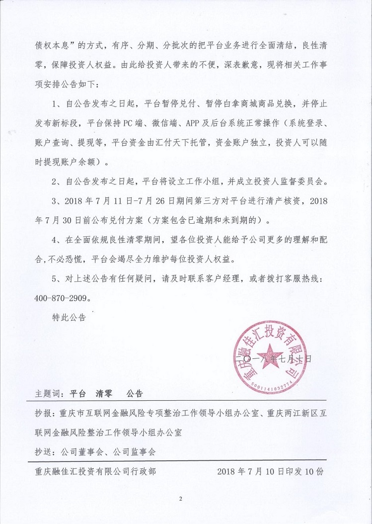 闪电金融 2018.7.11-9:27……闪电金融平台依规良性清零公告