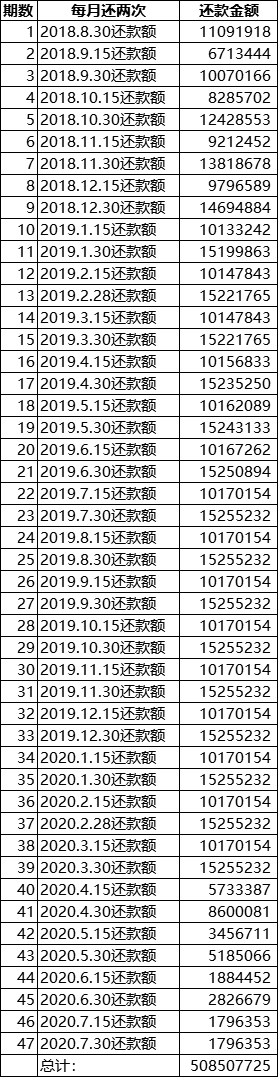 经与投资人代表及投资人等多方协商,现钱保姆团队,将还款计划由原来的每月25日后偿还累计到期金额的5%,分24期(两年)兑付,更改为每月10日至15日偿还累计到期金额的2%、每月25日至30日偿还累计到期金额的3%,共兑付47期(两年),最后两期偿还剩余待还金额,首次兑付时间为2018年8月25日至2018年8月30日,首次兑付比例为累计到期金额的5%。