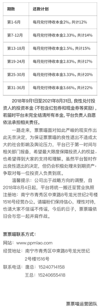 票票喵 2018.8.6-10:20……票票喵良性退出方案