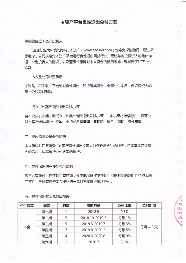 e资产 2018.8.6-23:14……e资产平台良性退出兑付方案