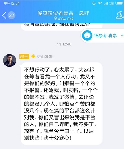 爱贷网 2018.8.14-20:03……大家都在等着看我一个人行动,我又不是你们的爹妈,心太累了