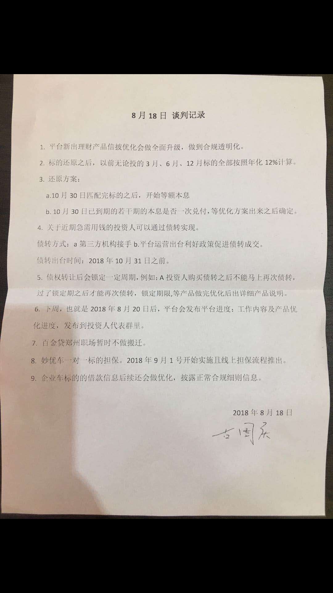 百金贷 2018.8.19-11:25……百金贷8.18谈判记录