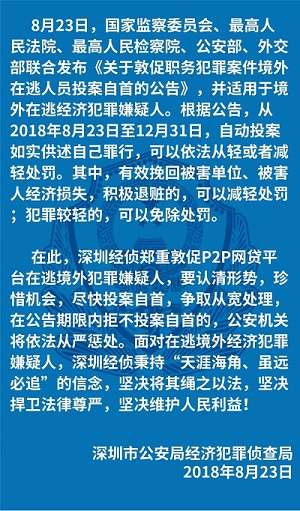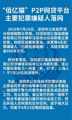 8月24日消息,深圳佰亿猫p2p网贷平台主要犯罪嫌疑人落网。