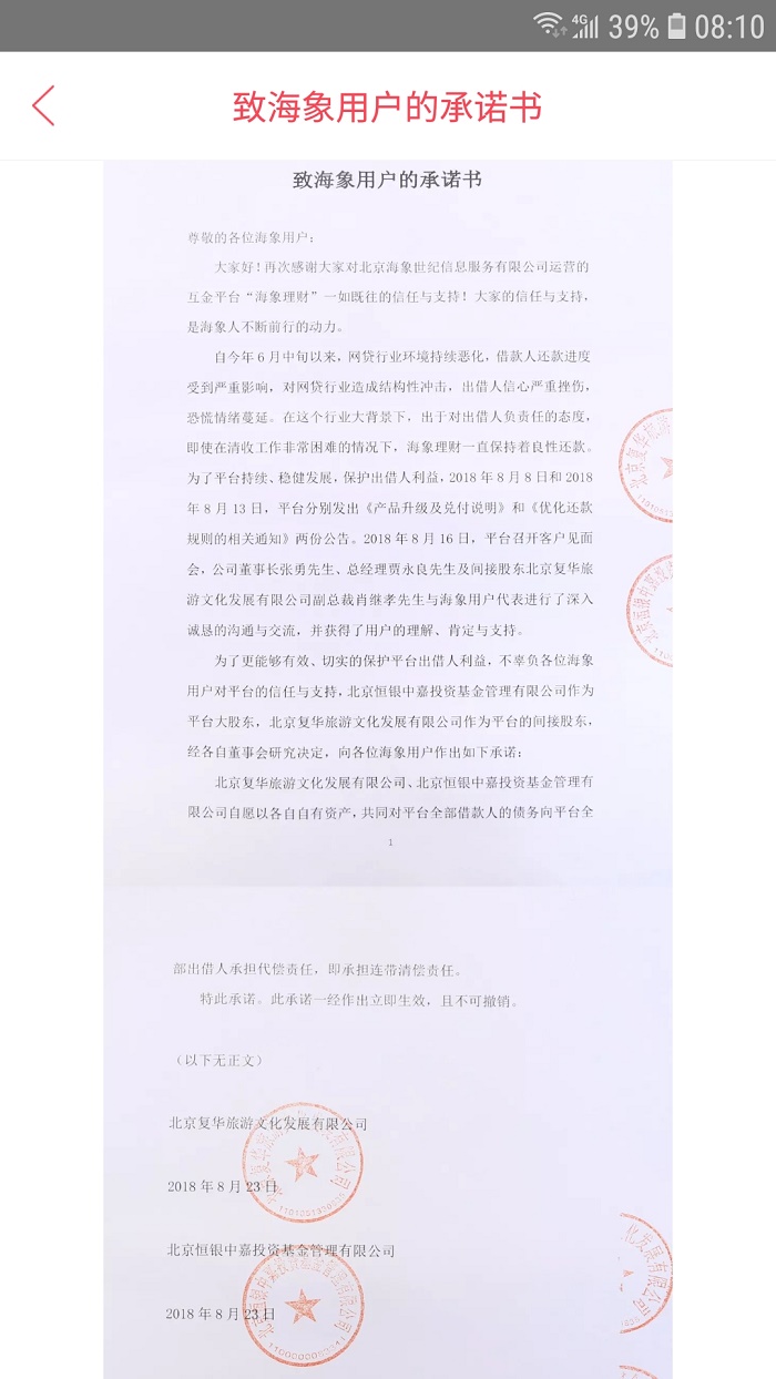 海象理财 2018.8.23-17:21……致海象用户的承诺书