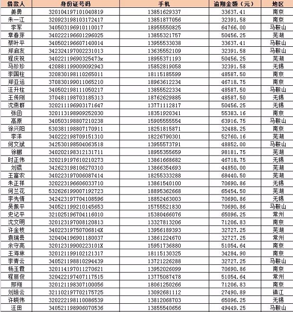 付融宝 2018.8.28-17:04……付融宝个人贷第一期逾期名单公布……我们呼吁以下借款人尽快依法履约,遵循契约精神,避免失信