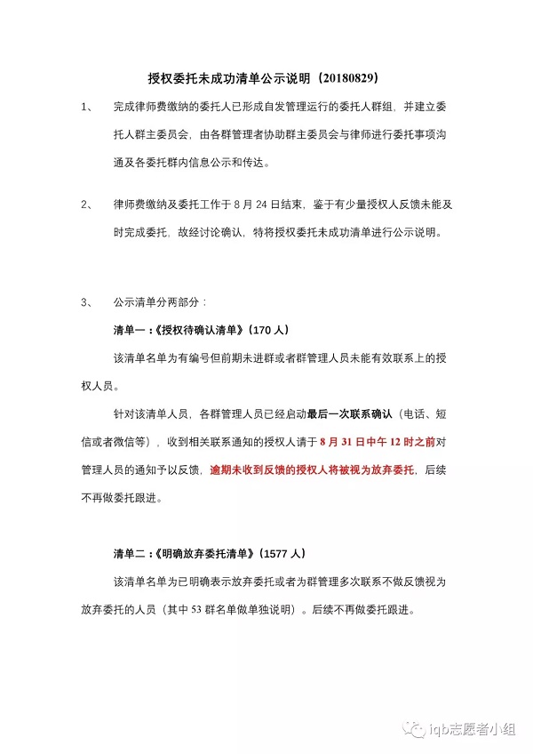 爱钱帮 2018.8.30-0:34……授权委托未成功清单公示及说明