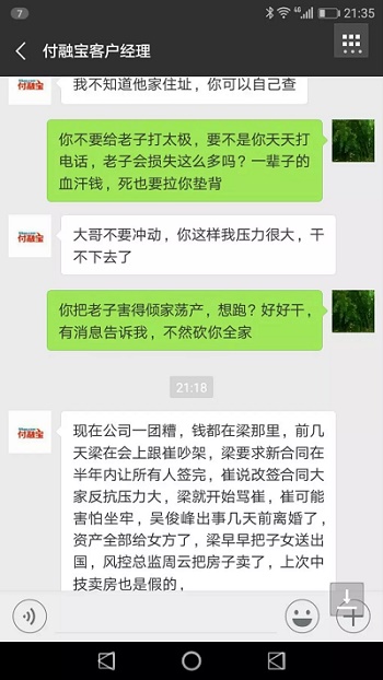 经过一天的内部谈话与调查,对网上流传的图片,给大家做如下解释:截图中的“付融宝客户经理”并非公司员工,对话内容不属实,其真实身份有待进一步调查。