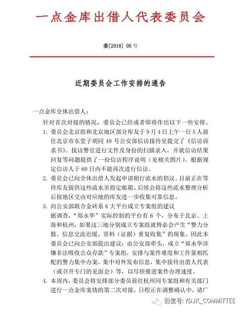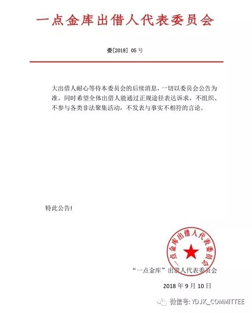 一点金库 2018.9.11-0:00……一点金库出借人代表委员会近期工作安排的通告