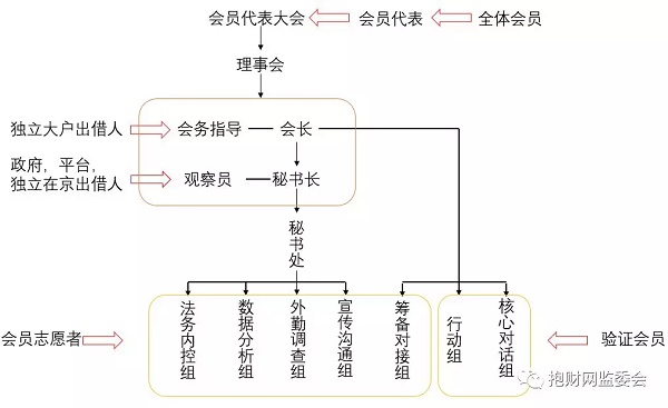 理事由会员代表大会选举产生的会长、秘书长及独立大户出借人担任的会务指导组成。