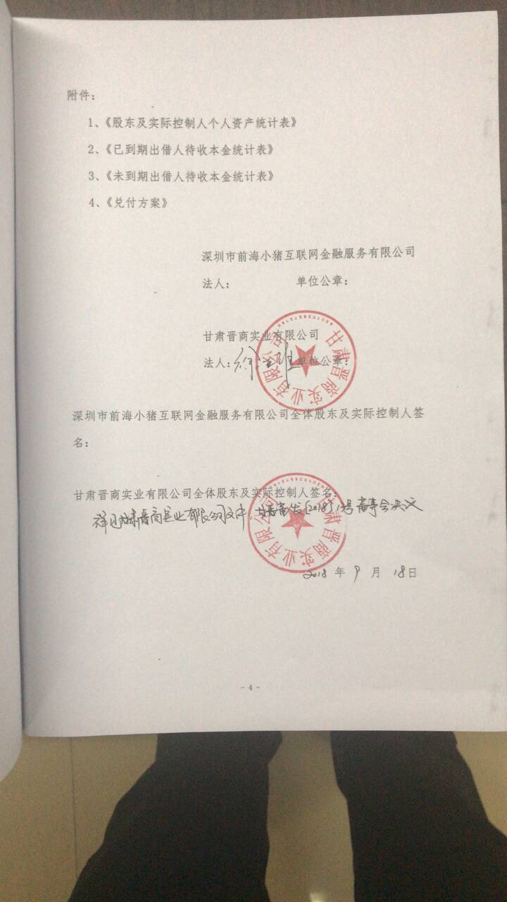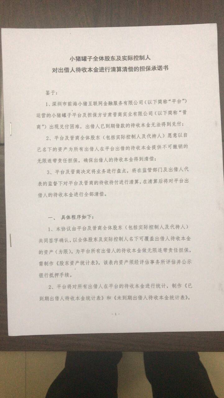 小猪罐子 2018.9.19-19:55……小猪罐子全体股东及实际控制人对出借人待收本金进行清算清偿的担保承诺书