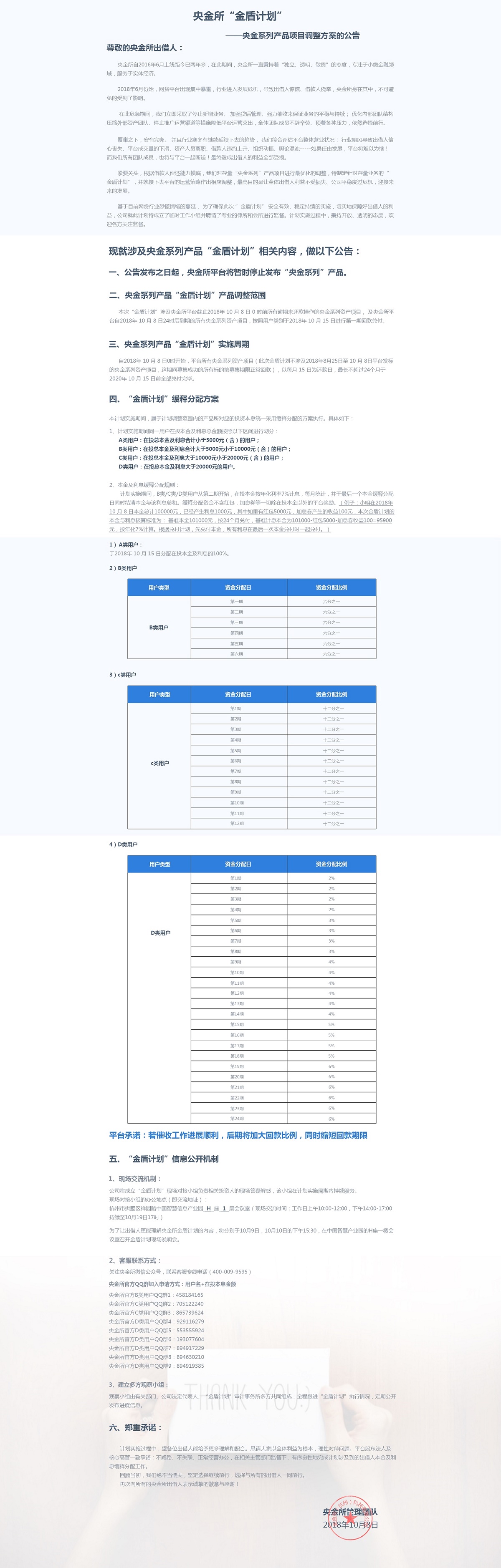 央金所 2018.10.8-17:13……央金所金盾计划–央金系列产品项目调整方案的公告
