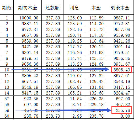 按照目前规则,逾期罚息按借款本金计算,则出借人陈先生在收到逾期还款时将获得原始出借金额10000元的0.05%/天,即5元/天的罚息。对于借款人来说,逾期一天,付出的将是100元的罚息。如果借款人确实因为一时资金周转不开,导致逾期60天,付出的罚息将达6000元之多,已经远远超出了一期正常还款的金额。极端情况下,如果借款人在第60期发生逾期,根据还款计划表(见图二)可以知道,最后一期应还本金是235.78元,当期利息2.95元,如果仍按上述罚息计算规则,那么借款人仍然需要承担每天100元的罚息,高达1550%的年化对借款人来说无疑是极不公平的,更进一步地说,上面的罚息远远超过24%的红线,是不被法律所支持的。
