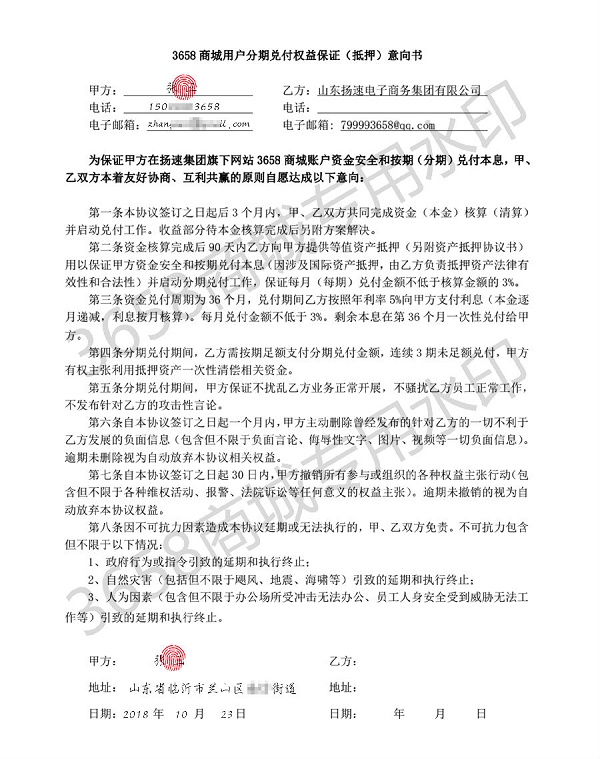 3658商城(扬速集团) 2018.10.25-10:14……扬速集团分期兑付进度公告