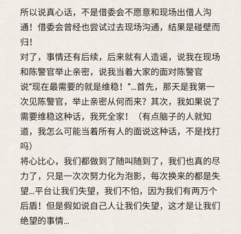 其次、借委会其实有委员去了现场,观察了解现场的情况。22日,我们一名委员到了平台现场,另一名委员到了经侦大队。现场也有几位出借人看到了我们的委员。