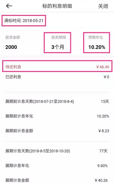 用户在2018年8月5日展期开始前参加平台活动所获得的加息金额,平台将在2018年12月5日前全部发放完毕。