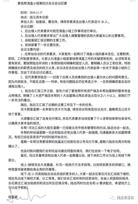 爱钱帮 2018.11.19-20:31……爱钱帮清盘小组第四次会议纪要