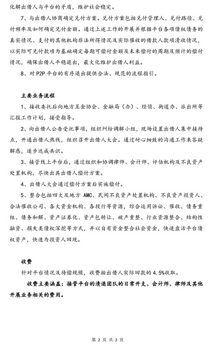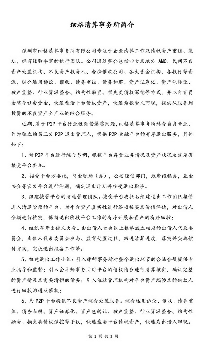鉴于近期因为部分资料缺失、配合经侦问询、催收人手不足等客观原因,为进一步推进兑付工作的有序开展,口贷网拟将邀请第三方独立的专业清算事务所进场协助催收工作。目前该事务所负责人已经抵达口贷网,前日也和现场出借人进行了初步沟通;最近两天,口贷网相关人员也陪同该事务所负责人和部分出借人前往金融办和经侦等相关部门进行积极的沟通。口贷网特拟该预案报请广大出借人共同商议,后续工作的开展可在同意该预案后,由口贷网主导、出借人参与和该清算事务所负责人商议具体细节。