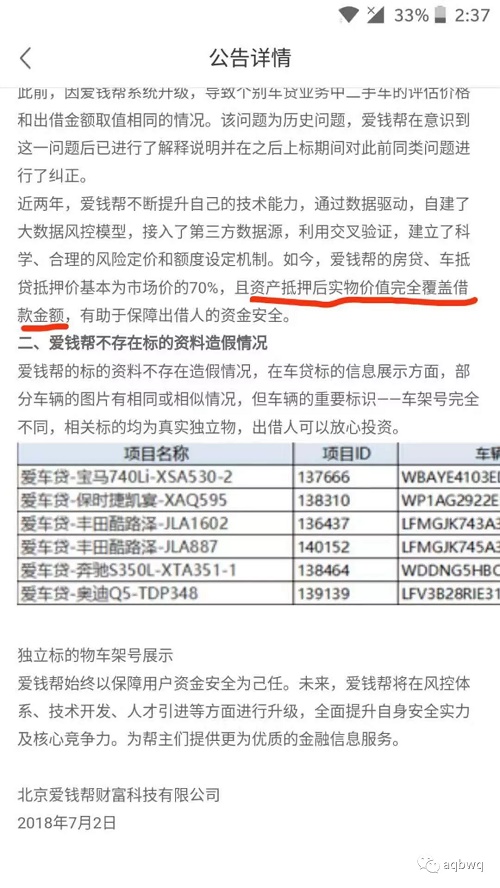爱钱帮 2018.12.10-11:15……爱钱帮:资产抵押后实物价值完全覆盖借款金额……上表清晰的展示了车帮加盟商们的老赖嘴脸!标黄的是车帮待收金额最大的四大加盟商,也是出借人最多的重灾区