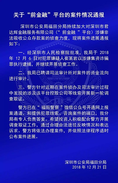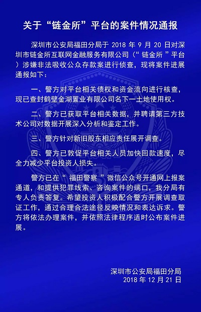链金所、前金融 2018.12.21-19:23……关于“链金所”和“前金融”平台的案情通报