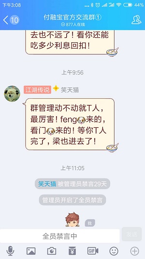 官方群在疯狂的踢人了,说立案的骂人的全踢了,态度对付融宝不利的出借人管理员也踢了,付融宝官方群接下来是要解散群了,跟出借人对抗不想还钱了,要求赶紧立案!!!
