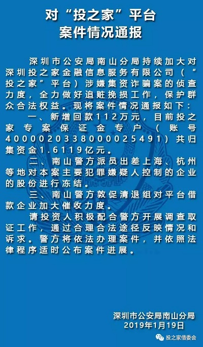 投之家 2019.1.19-16:18……2019年1月19日官方案情通报