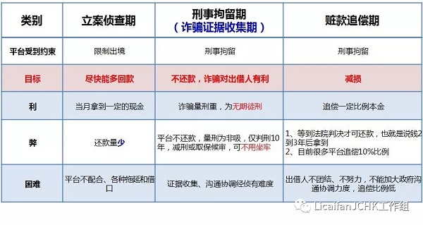 (三)追赃减损期:建议出借人能够掌握一定的线索,与平台抗辩,督促政府更多的追偿赃款。