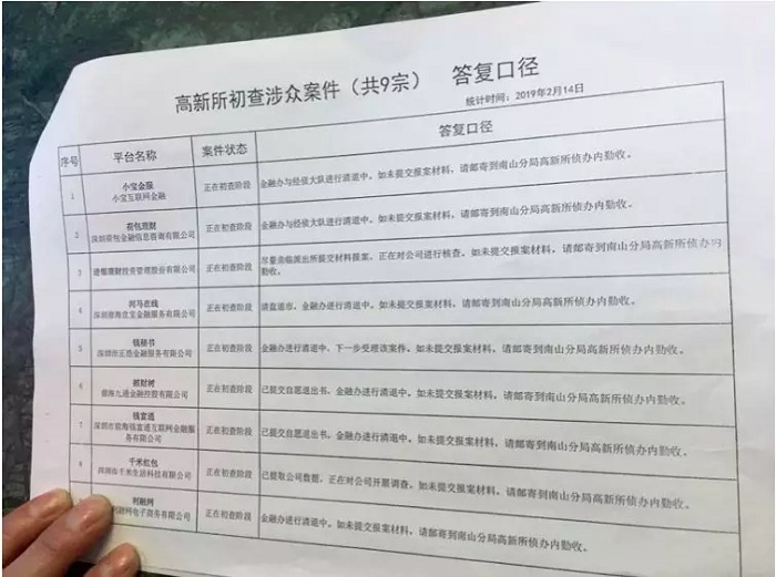 1、按照2018年12月19日签发的“175号文”的风险分类,荷包目前属于未出险机构,且存量规模较大,荷包高层也始终与相关监管部门保持密切沟通,确保第一时间向监管部门报送平台情况。经核实,在用户群中转发的所谓《高新所初查涉众案件答复口径》一图及“荷包大限言论”等并不属实。希望大家切勿轻信谣言,不要给投机分子趁乱获利的机会。