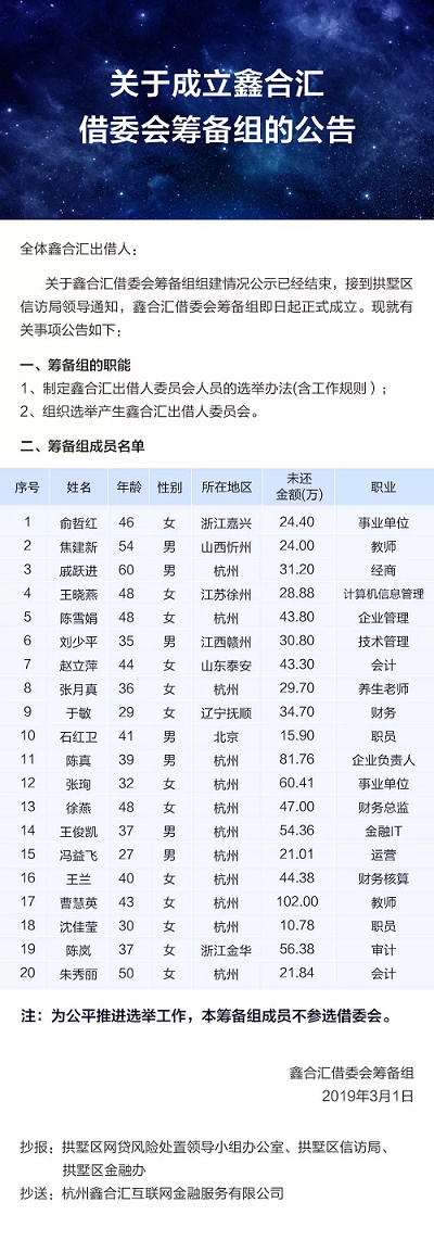 鑫合汇 2019.3.1-14:48……关于成立鑫合汇借委会筹备组的公告