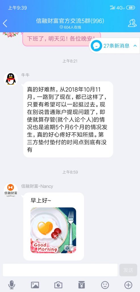 信融财富 2019.3.11-9:46……客服只有早上好,明天见。基本就这样了