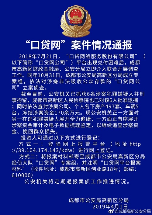 口贷网 2019.4.1-16:00……“口贷网”案件情况通报……查封房产497套