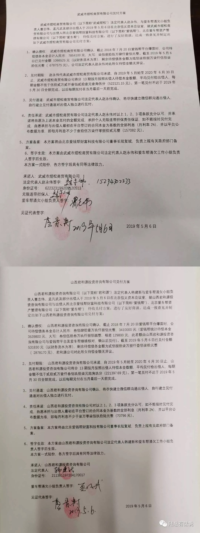 爱钱帮 2019.5.6-20:11……武威、君和源兑付方案