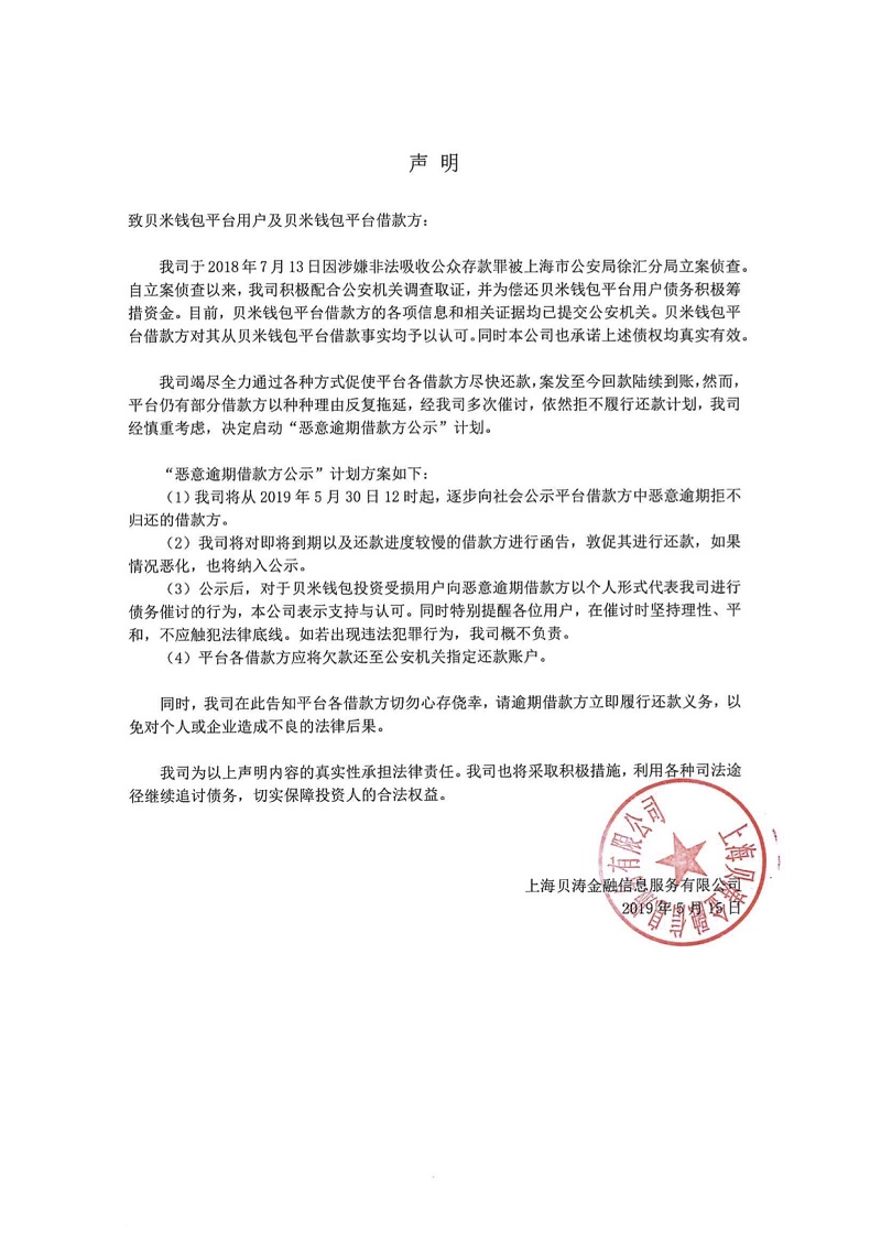 贝米钱包 2019.5.15-10:01……贝米钱包公司声明(2019年5月15日)