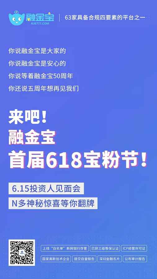 融金宝 2019.6.11-18:00……融金宝618宝粉节……这个野鸡都敢上,你们都是不要命了吧!!都是大额企业标,借款人全是山穷水尽的老赖,这个平台不雷,我被雷劈死(要不要这么狠呀)
