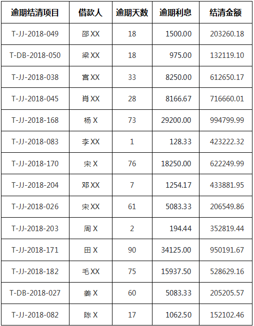 五月份已结清的逾期项目情况如下,请对应项目的出借人注意查收本金、利息及罚息: