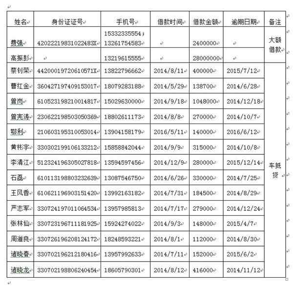 通告:对于部分“老赖”借款人名单的披露