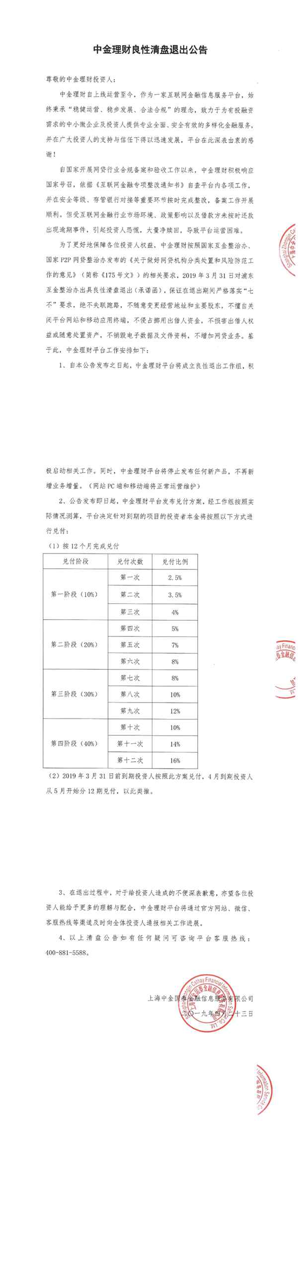中金国泰 2019.4.23-11:01……良性清盘退出