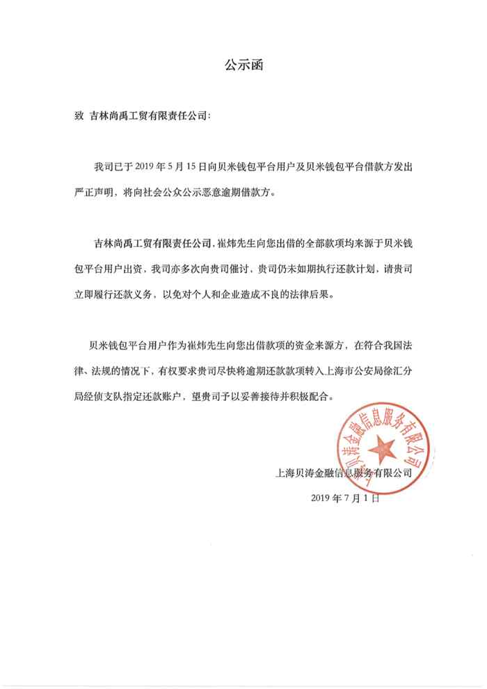 贝米钱包 2019.7.2-11:55……公示恶意逾期借款方