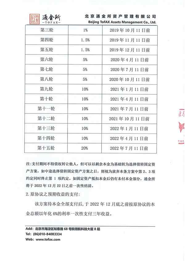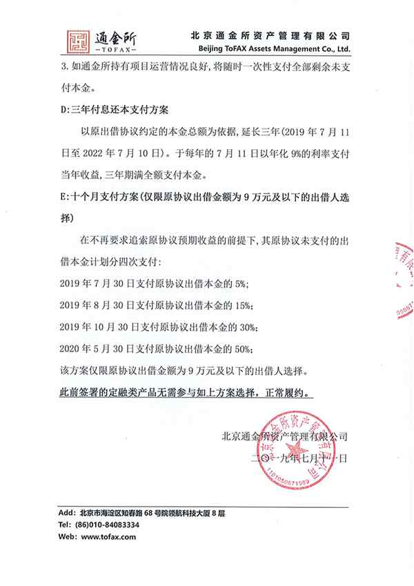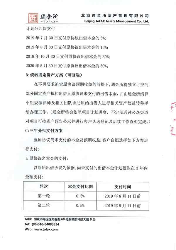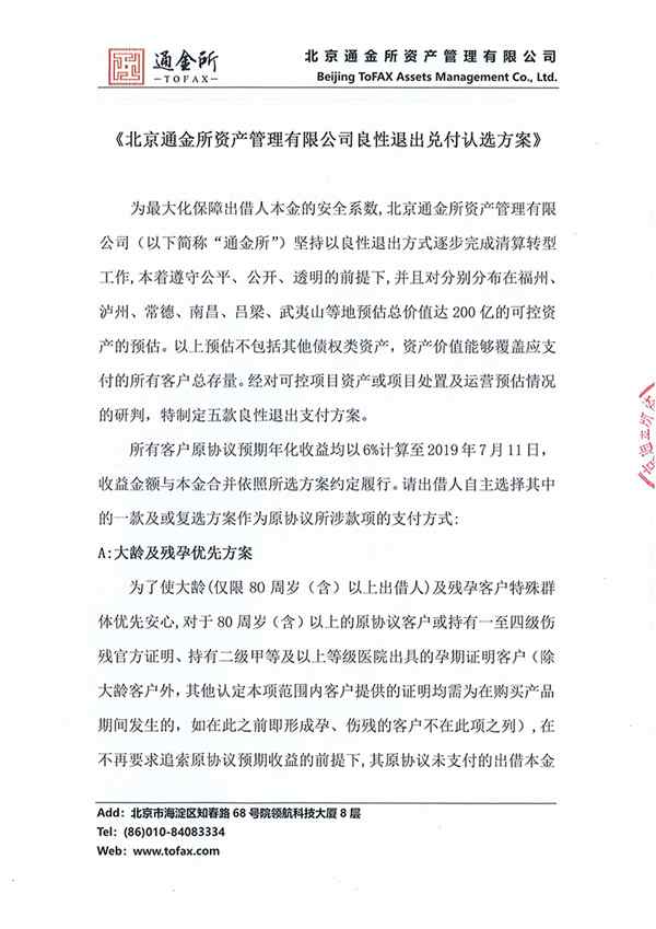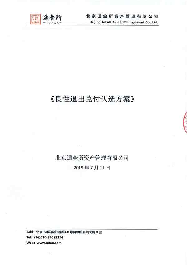 通金所 2019.7.10-16:38……北京通金所资产管理有限公司良性退出兑付认选方案