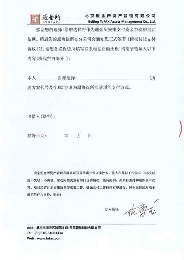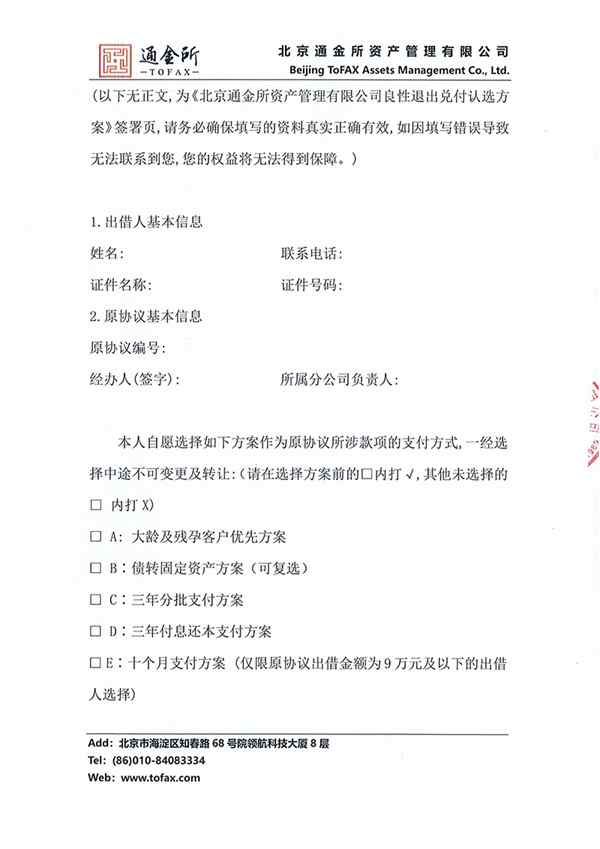 北京通金所资产管理有限公司良性退出兑付认选方案