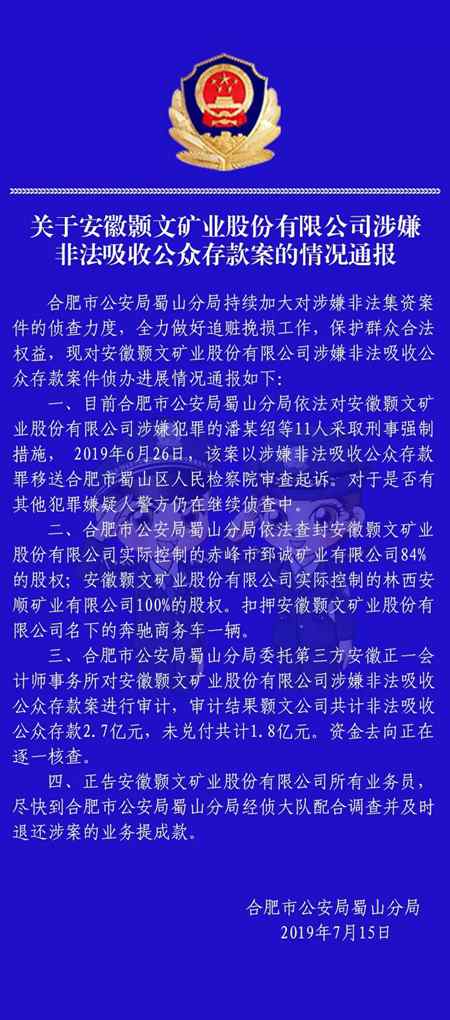 颢文矿业 2019.7.15-19:15……涉嫌非法吸收公众存款案的情况通报