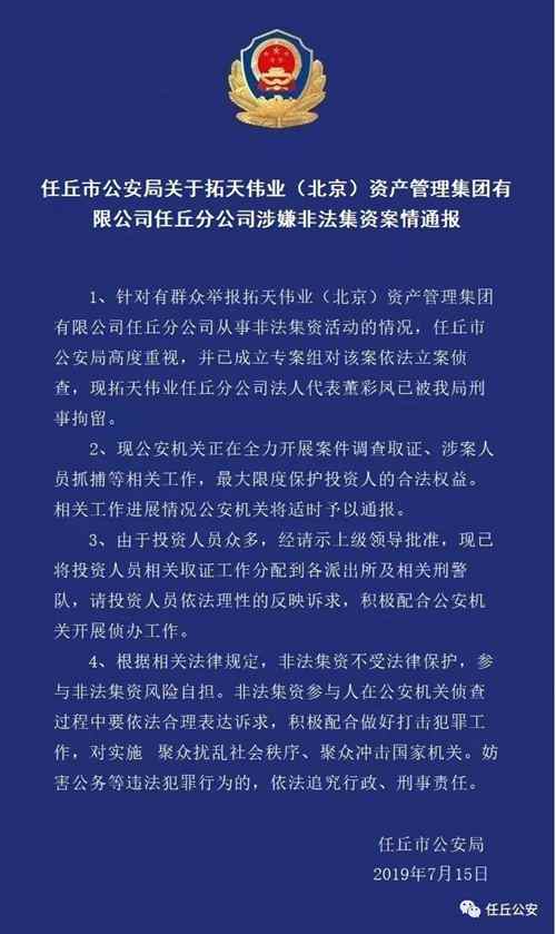拓天伟业 2019.7.15-17:24……涉嫌非法集资案情通报
