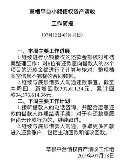 草根投资 2019.7.19-13:00……小额催收简报7月12日-18日