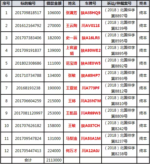 为了让大家了解到最真实的催收情况,现将部分车易贷法诉/仲裁执行终本案例相关标的信息披露如下: