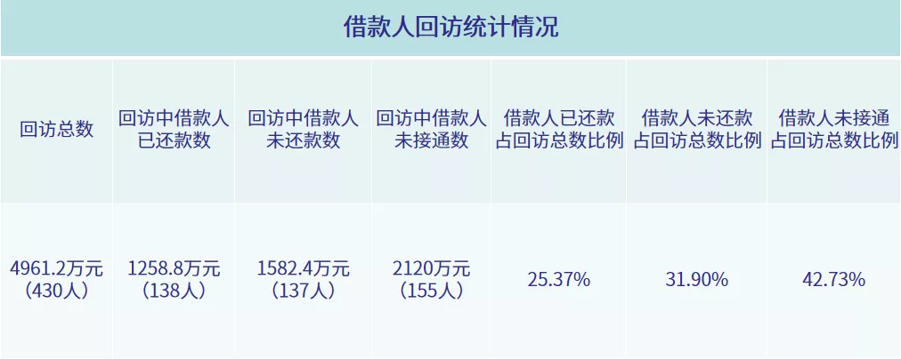 1、由于渠道是与借款人实质接触的第一责任人,因此在停止新增项目的前两个月,平台分别与直管的渠道以及合作的湖南立天资产管理有限公司(以下简称“立天公司”)沟通,要求其在一段时间内反馈借款人不能按时还款的原因以及预期还款的日期。目前来看,平台直管的渠道这项工作开展的较好,但合作的立天公司这项工作并没有进行。