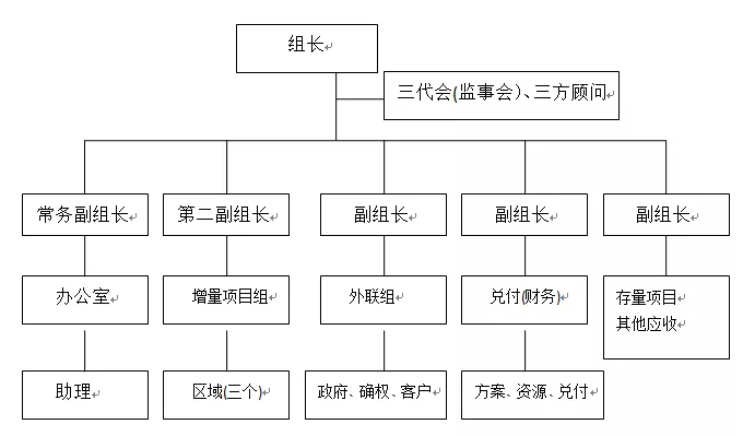 设四位副组长;分管增量项目、外联沟通、资金兑付、现有项目管理。副组长待用的人员,由副组长选聘,报组长确认。